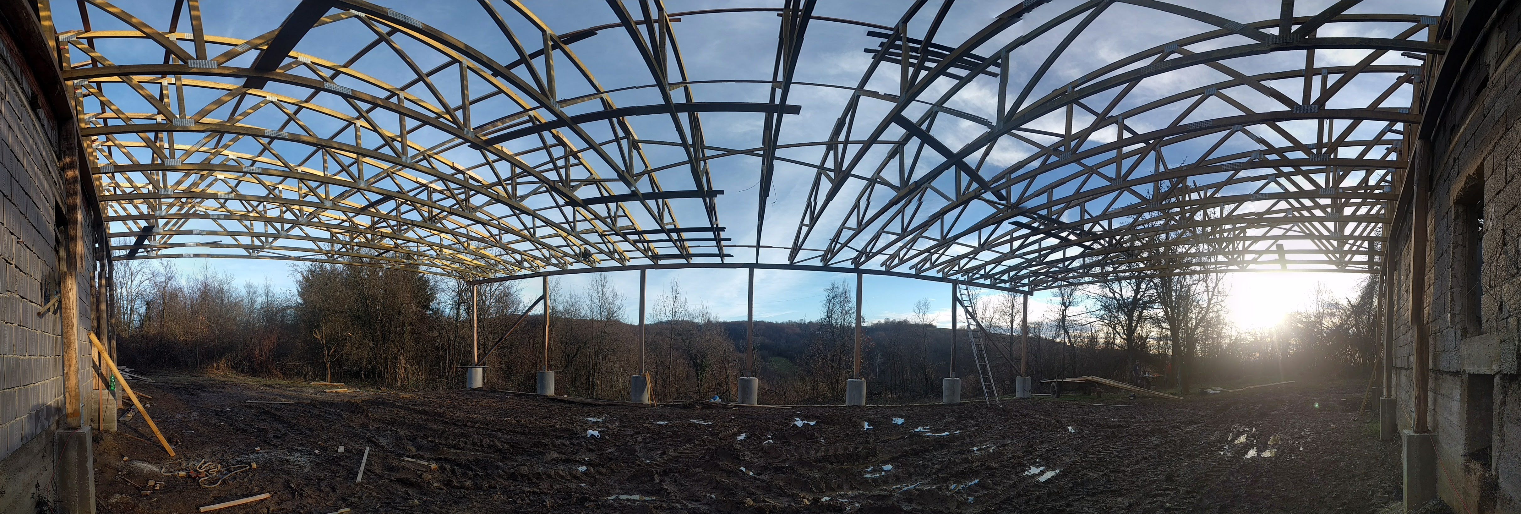 Projektovanje i izvođenje rešetkaste krovne konstrukcije ( krovnih bindera ) na ovčarniku u Petrinji ( Hrvatska/ Sisačko-moslavačka županija ).